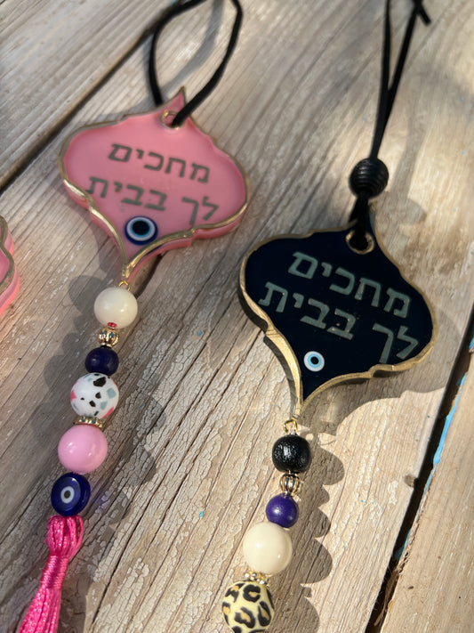 מחזיק מפתחות רויאל כחול מחזיק מפתחות בעל גוון כחול עמוק עם עין של חמסה ועלי זהב עשוי...